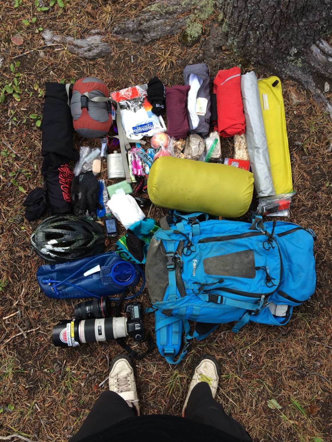 Then, from fellow photog Paris Gore I borrowed a larger F-Stop pack, as there was no way I could fit all the sleeping gear and clothing plus food, spares, tools and camera gear for three days in my small riding-specific camera bag.